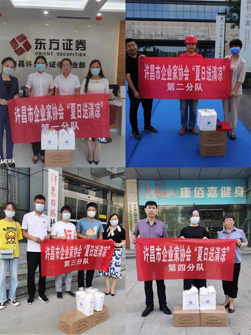 早在疫情到達(dá)許昌的前幾天,協(xié)會會員河南柏毅醫(yī)用輔料有限公司總經(jīng)理孔建合,為協(xié)會捐贈一批N95口罩,用于疫情防控,緊接著在黃秘書長的帶領(lǐng)下,本著“防控疫情 人人有責(zé)”的精神,一方面先后前往魏都區(qū)政府、許昌市婦聯(lián)、許昌市退役軍人事務(wù)局捐贈N95口罩,另一方面十二位值班會長成立12個“送清涼 抗疫情”小分隊,冒著酷暑,深入到每一家會員企業(yè),一是送去協(xié)會的溫情,二是了解企業(yè)生產(chǎn)經(jīng)營中遇到的難題,想辦法幫助會員度過難關(guān)。在疫情嚴(yán)峻的狀態(tài)下,協(xié)會做到了“生命重于泰山 防控不落一人”,感謝無私奉獻(xiàn)捐贈抗疫物資的孔總,感謝十二位值班會長團(tuán)結(jié)一致眾志成城抗擊疫情的精神!