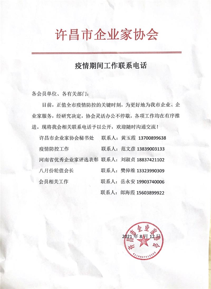 8月12日,為更好服務我市企業(yè)、企業(yè)家,協(xié)會靈活辦公不停歇,協(xié)會將相關聯(lián)系電話予以公開,歡迎隨時溝通交流!