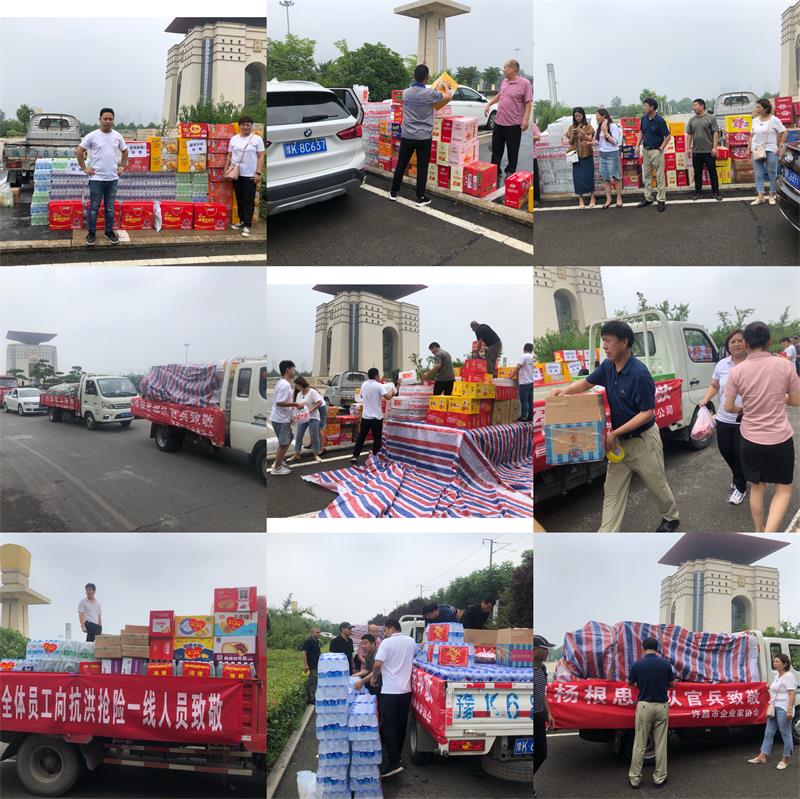 另從鄢陵安置點回來后,企協(xié)秘書長黃玉霞久久不能平靜,每天密切關(guān)注著關(guān)于抗洪搶險的相關(guān)新聞。7月23日早上,黃秘書長在協(xié)會群里發(fā)了一條楊根思部隊官兵在鄭州抗洪搶險的視頻后,協(xié)會會員紛紛留言,要上抗洪前線和部隊官兵并肩作戰(zhàn),為抗洪搶險出把力。短短?三個小時,協(xié)會30位企業(yè)家自發(fā)組織起來,購置了礦泉水、消毒水、面包、火腿腸、花露水等近6萬元的物資,下午?點驅(qū)車前往鄭州慰問逆流而上的楊根思部隊。