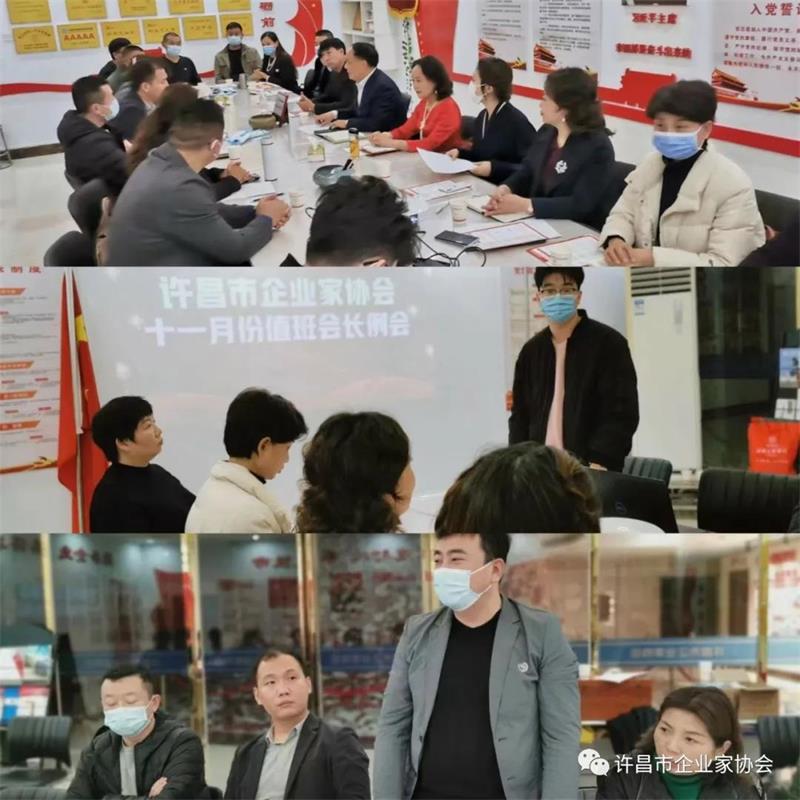 2021年11月6日,許昌市企業(yè)家協(xié)會(huì)在協(xié)會(huì)會(huì)議室召開(kāi)十一月份值班會(huì)長(zhǎng)例會(huì),會(huì)議由本月值班會(huì)長(zhǎng)汪建成主持。