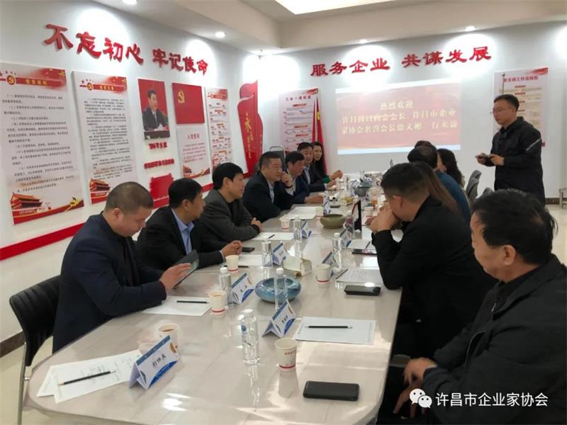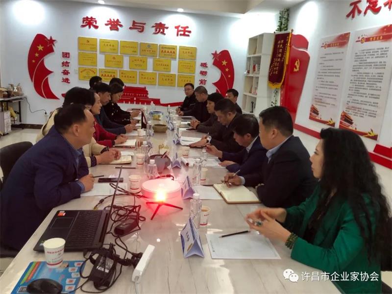 2021年10月17日下午,許昌周口商會(huì)會(huì)長、許昌市企業(yè)家協(xié)會(huì)名譽(yù)會(huì)長徐文彬一行9人走訪許昌市企業(yè)家協(xié)會(huì)。企業(yè)家協(xié)會(huì)秘書長黃玉霞、執(zhí)行會(huì)長張建濤、值班會(huì)長、許昌許防文化傳媒有限公司總經(jīng)理劉洪毅、副秘書長范文彥、值班會(huì)長錢俊霞、汪建成等熱情接待了徐會(huì)長一行并舉行了座談。