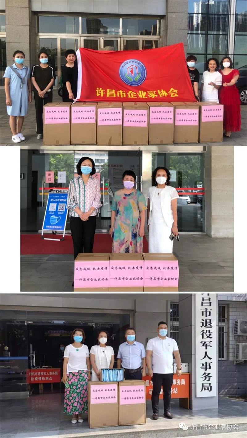 早在疫情到達許昌的前幾天,協(xié)會會員河南柏毅醫(yī)用輔料有限公司總經(jīng)理孔建合,為協(xié)會捐贈一批N95口罩,用于疫情防控,緊接著在黃秘書長的帶領(lǐng)下,本著“防控疫情 人人有責(zé)”的精神,一方面先后前往魏都區(qū)政府、許昌市婦聯(lián)、許昌市退役軍人事務(wù)局捐贈N95口罩,另一方面十二位值班會長成立12個“送清涼 抗疫情”小分隊,冒著酷暑,深入到每一家會員企業(yè),一是送去協(xié)會的溫情,二是了解企業(yè)生產(chǎn)經(jīng)營中遇到的難題,想辦法幫助會員度過難關(guān)。在疫情嚴峻的狀態(tài)下,協(xié)會做到了“生命重于泰山 防控不落一人”,感謝無私奉獻捐贈抗疫物資的孔總,感謝十二位值班會長團結(jié)一致眾志成城抗擊疫情的精神!