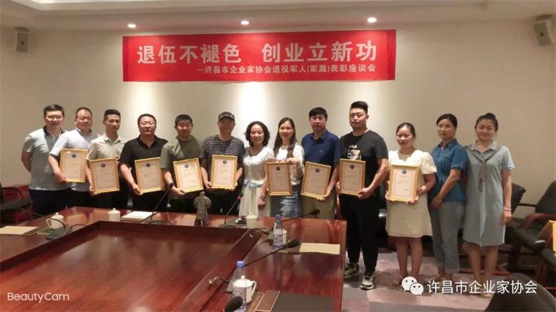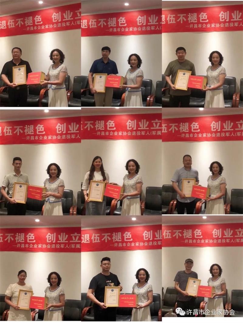 (許昌市企業(yè)家協(xié)會秘書長黃玉霞共同為協(xié)會退役軍人(軍屬)頒發(fā)榮譽證書及獎品)