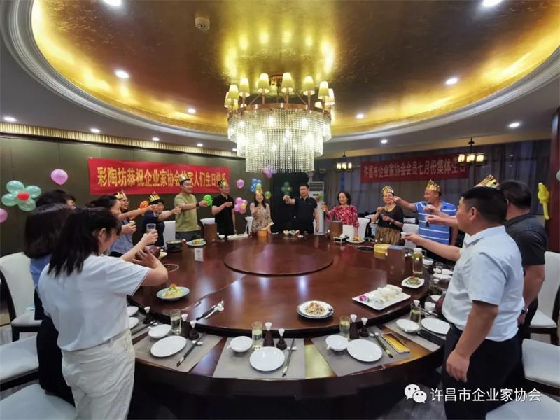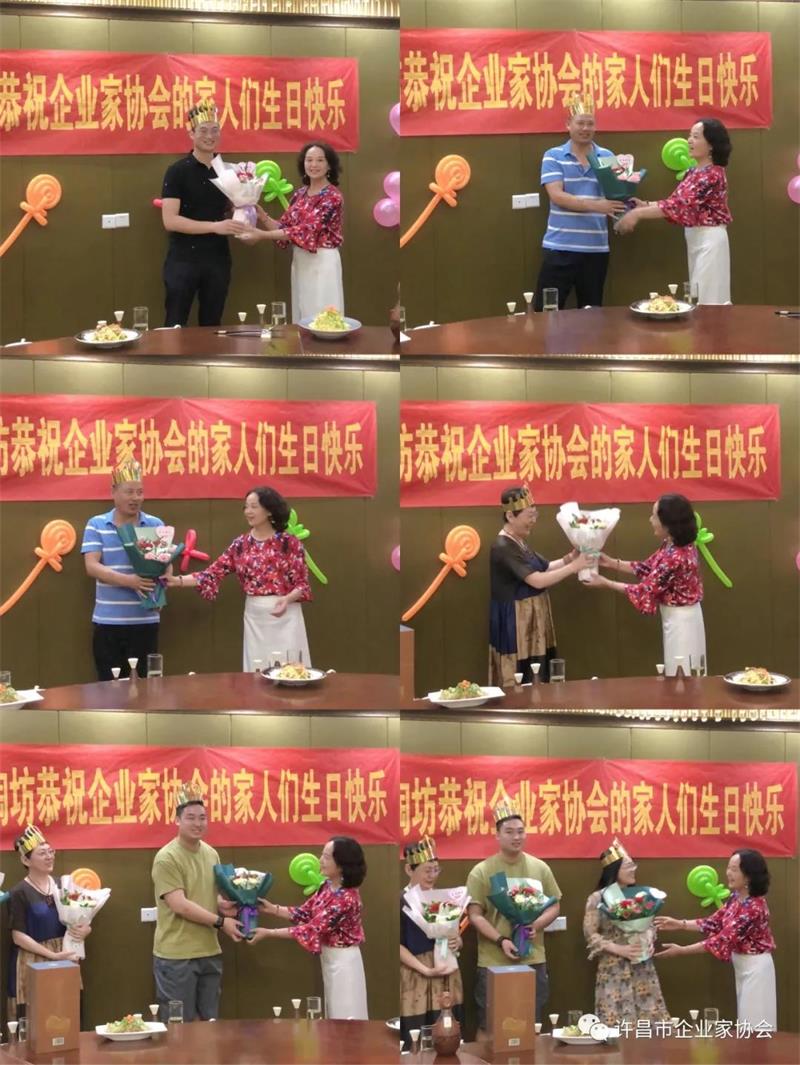 許昌市企業(yè)家協(xié)會舉辦七月份生日宴,燭光搖曳、歡聲笑語!參加生日宴的會員們笑容滿面,享受著協(xié)會大家庭帶來的溫暖。點點燭光,照亮了每位會員的心;濃濃溫情,讓壽星們久久回味!