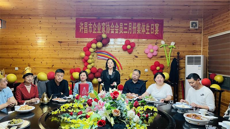 3月9日晚上,許昌市企業(yè)家協(xié)會(huì)3月份集體生日宴,在陳家小院溫情舉辦。秘書長(zhǎng)黃玉霞、婦聯(lián)主席曲釗霞、值班會(huì)長(zhǎng)楊廣偉及壽星相聚共度生日宴。