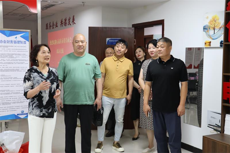 6月21日上午石家莊市許昌商會會長朱登山、 執(zhí)行會長孫會營、賈克輝、秘書長焦平、副秘書長王建民一行5人蒞臨我會參觀交流。市工商聯副主席曲釗霞對到訪的兄弟商會表示熱烈歡迎,我會秘書長黃玉霞、執(zhí)行會長張建濤、副秘書長范文彥熱情接待并進行座談交流。 通過參觀文化墻、觀看宣傳片向來賓展示了協(xié)會歷程和發(fā)展情況。