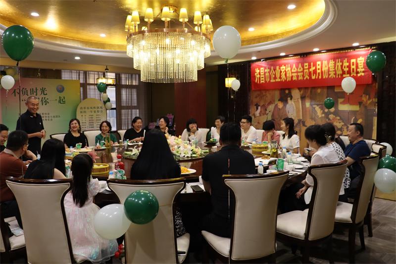 7月15日晚上,許昌市企業(yè)家協(xié)會7月份集體生日宴,在世春閣酒店溫情舉辦。秘書長黃玉霞、婦聯(lián)主席曲釗霞、值班會長梁華麗等共25位協(xié)會會員相聚共度生日宴。