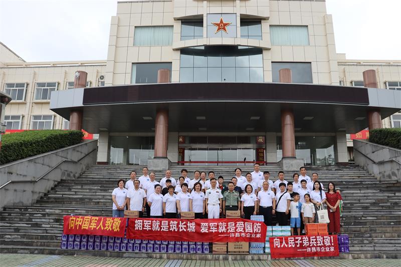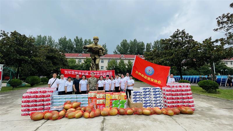 慰問活動(dòng)中,企協(xié)先后到兩支駐許部隊(duì)開展“八一”慰問活動(dòng),感謝部隊(duì)官兵在為第二故鄉(xiāng)的經(jīng)濟(jì)發(fā)展中做出的重要貢獻(xiàn) ,并為部隊(duì)官兵們送上了消暑降溫的慰問品,部隊(duì)首長親切接見了企業(yè)家并進(jìn)行了座談交流,暢敘軍民魚水情。