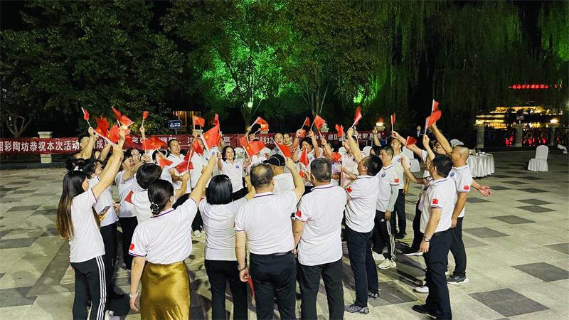 晚20時,紅彤彤的熊熊火焰在黃玉霞秘書長的點燃下廣場中央顯得格外耀眼。在篝火晚會映照下,企業(yè)家紛紛上場展示才藝,用歌聲表達我們對祖國母親的無比熱愛。 隨著企業(yè)家們圍著篝火載歌載舞 將晚會推向高潮。