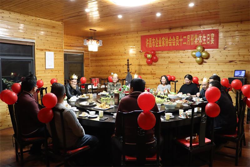 12月9日晚上,許昌市企業(yè)家協(xié)會(huì)12月份集體生日宴,在陳家小院溫情舉辦。秘書長黃玉霞、執(zhí)行會(huì)長張建濤、十二月份值班會(huì)長范文彥等共20位協(xié)會(huì)會(huì)員相聚共度生日宴。