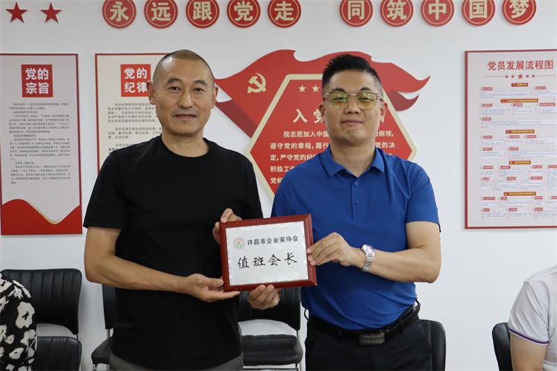 7月5日下午,許昌市企業(yè)家協(xié)會(huì)七月份輪值會(huì)長工作交接會(huì)在許昌市企業(yè)家協(xié)會(huì)會(huì)議室召開,會(huì)議由七月份值班會(huì)長、許昌有朋能源科技有限公司總經(jīng)理婁玉陣主持。
