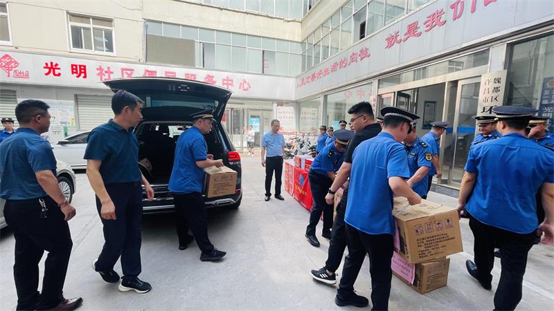 7月24日上午,冒著炎炎酷暑,協(xié)會(huì)秘書(shū)長(zhǎng)黃玉霞、七月份值班會(huì)長(zhǎng)婁玉陣、副值班會(huì)長(zhǎng)張?zhí)┟?、古井貢酒鄭豪?人來(lái)到許昌市魏都區(qū)城市管理綜合執(zhí)法大隊(duì),送去娃哈哈礦泉水、洗衣液等慰問(wèn)品,致敬魏都城管。