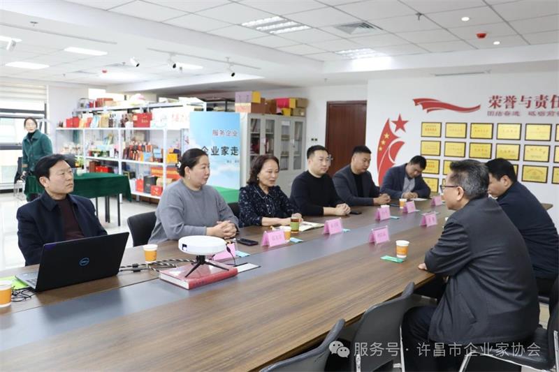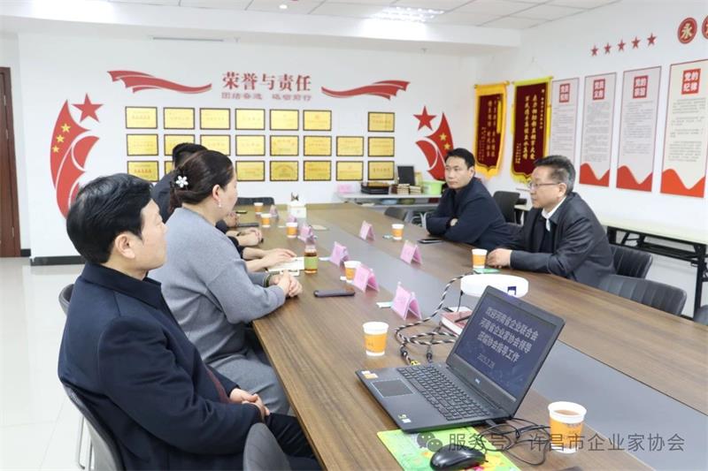 2025年2月28日下午,河南省企業(yè)聯(lián)合會、企業(yè)家協(xié)會勞動關系部主任胡宗福與辦公室兼會員工作部主任唐浩然一行蒞臨許昌市企業(yè)家協(xié)會參觀指導。許昌市企業(yè)家協(xié)會秘書長黃玉霞、黨支部書記何志東、常務副秘書長范文彥,以及副秘書長張磊、會員尚永華、秘書處溫重作為企業(yè)家代表熱情接待并參加座談會。