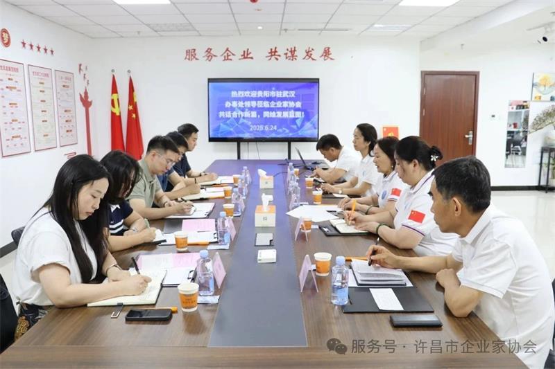 2025年6月24日上午,貴陽市人民政府駐武漢辦事處副主任姚固濤一行5人到訪我會進(jìn)行工作交流。協(xié)會秘書長黃玉霞、常務(wù)副秘書長范文彥、本月份值班會長李偉平、四月份值班會長韋永才、七月份值班會長張?zhí)┟窆餐哟⑴e行座談。