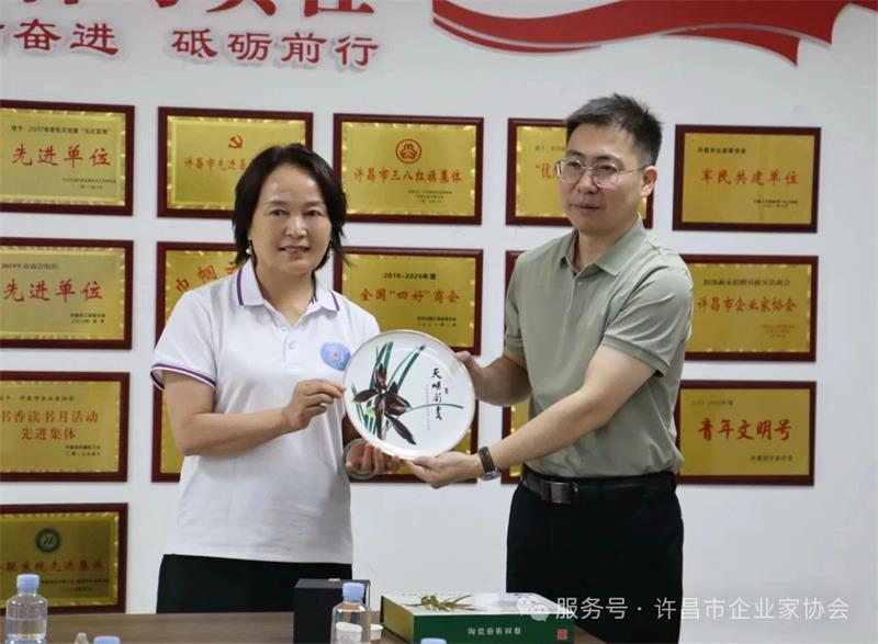 交流結(jié)束后,雙方互贈紀(jì)念品。貴陽市人民政府駐武漢辦事處向協(xié)會贈送了中共貴陽市委、貴陽市人民政府定制的精美的陶瓷藝術(shù)圓盤,協(xié)會回贈了具有許昌文化特色的鈞瓷主人杯。此次交流不僅加深了彼此了解,更為今后深化合作奠定了堅(jiān)實(shí)基礎(chǔ)。雙方一致表示,將以此為契機(jī),建立長效溝通機(jī)制,推動資源共享,實(shí)現(xiàn)互利共贏。