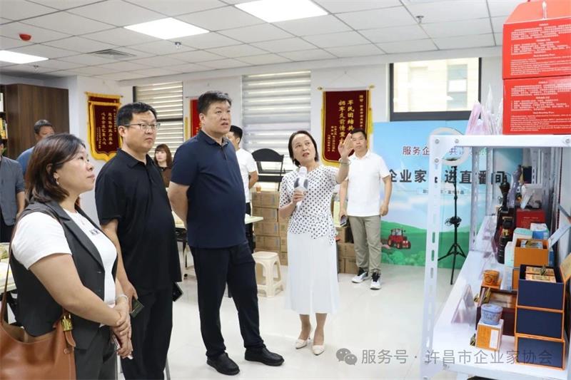 在黃玉霞的陪同下,考察團首先參觀了協(xié)會黨建文化陣地,詳細了解協(xié)會"黨建促會建"的特色工作模式。隨后,考察團重點參觀了會員企業(yè)產(chǎn)品展示區(qū),黃玉霞就會員企業(yè)產(chǎn)品種類、綠色健康及市場銷售等方面作了詳細介紹。